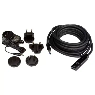 Solution tout-en-un pour contourner les contraintes de distance ainsi que les restrictions quant à  l'alimentation, ce cble d'extension USB 3.0 comporte un circuit actif alimenté par bus pour un rendement dépassant les limites de longueur des cbles USB standard. Quatre de ces cbles peuvent être fixés en série pour prolonger la connexion jusqu'à  20 mètres au total. Au besoin, il est possible d'alimenter l'appareil USB par prise murale à  l'aide de l'adaptateur d'alimentation CA universel fourni avec le cble.