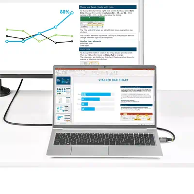 Convertisseur vidéo multi formats Type - C, mDP, HDMI et VGA pour une solution « tout - terrain ». - Caractéristiques principales : - Pratique et peu encombrant. - Possibilité d'utiliser chaque bloc indépendamment, sans forcément passer par le Type - C. - Configurations possibles : - Typ