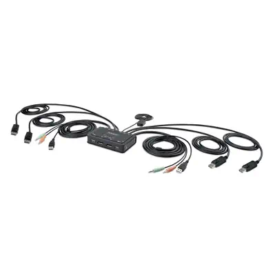 Switch KVM DisplayPort USB 2 ports avec ses câbles pieuvres combinés Commute le signal graphique DisplayPort, la souris et le clavier USB, périphériques USB 2.0, haut - parleurs stéréo et microphone, entre 2 ordinateurs. Spécifications : - Supporte les souris et claviers USB - Partage USB 2