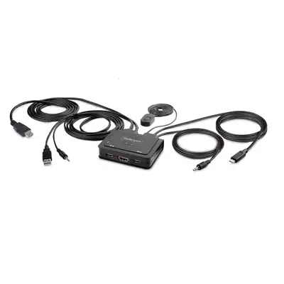 Découvrez le switch KVM hybride StarTech.com, idéal pour partager une souris, un clavier et un écran DisplayPort 4K 60Hz entre deux ordinateurs portables compatibles USB - C. - Installation facile : Cbles DisplayPort, USB - A, USB - C et audio 3,5 mm intégrés pour une mise en place sans tracas