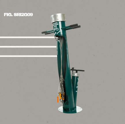 07 – LIGNE VERTEX — MINI - STATION COMPACTE - SRI2G27 — Mini - station avec pompe et support vélo - TYPE DE STATION - Mini - station de réparation compacte avec support vélo, nouvelle ligne VERTEX - MATÉRIAUX ET FINITION - Structure en acier galvanisé avec revêtement en poudre. Disp