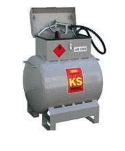 Station de ravitaillement essence KS MOBIL 200 litres avec pompe manuelle. Stations de ravitaillement essence et mélange huiles - essence : Homologuée selon ADR (livrée avec certificat d'homologation). Cuve antidéflagrante et résistante aux chocs. - Cuve simple paroi en acier laqué épaisseur