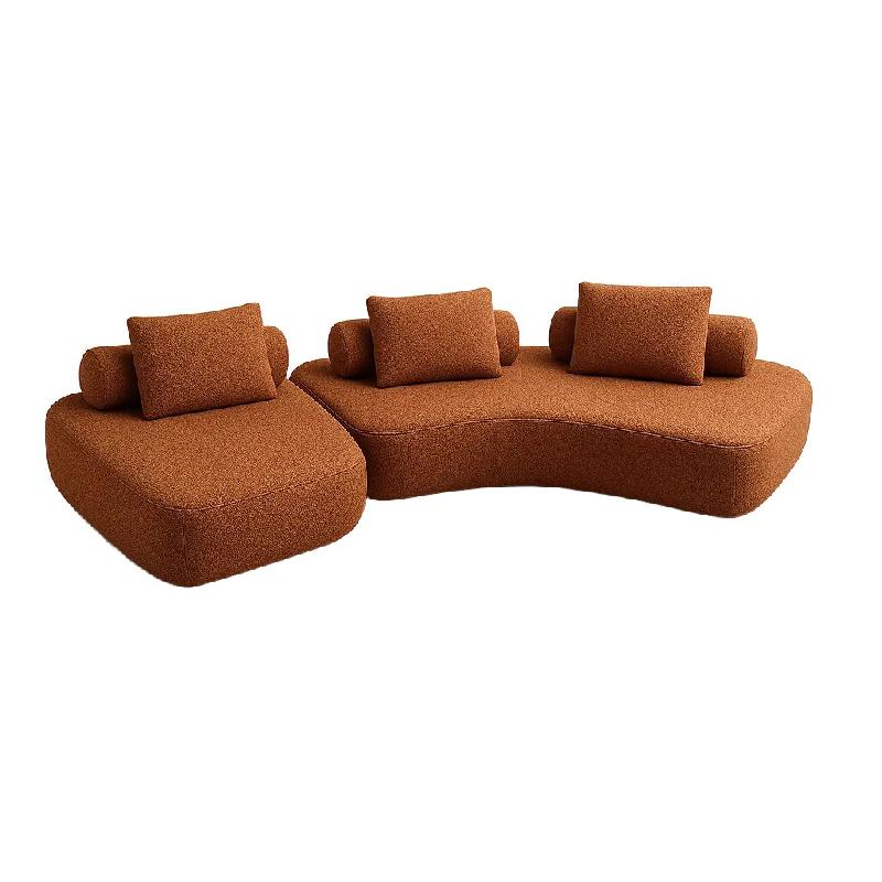 Le LONDON d'angle est un canapé modulable de 290 cm, parfait pour créer un espace convivial et design. Son assise profonde et ses courbes généreuses offrent un confort optimal tout en structurant élégamment votre salon.Revêtu d'une laine bouclée écrue ultra - douce, il séduit par son touch