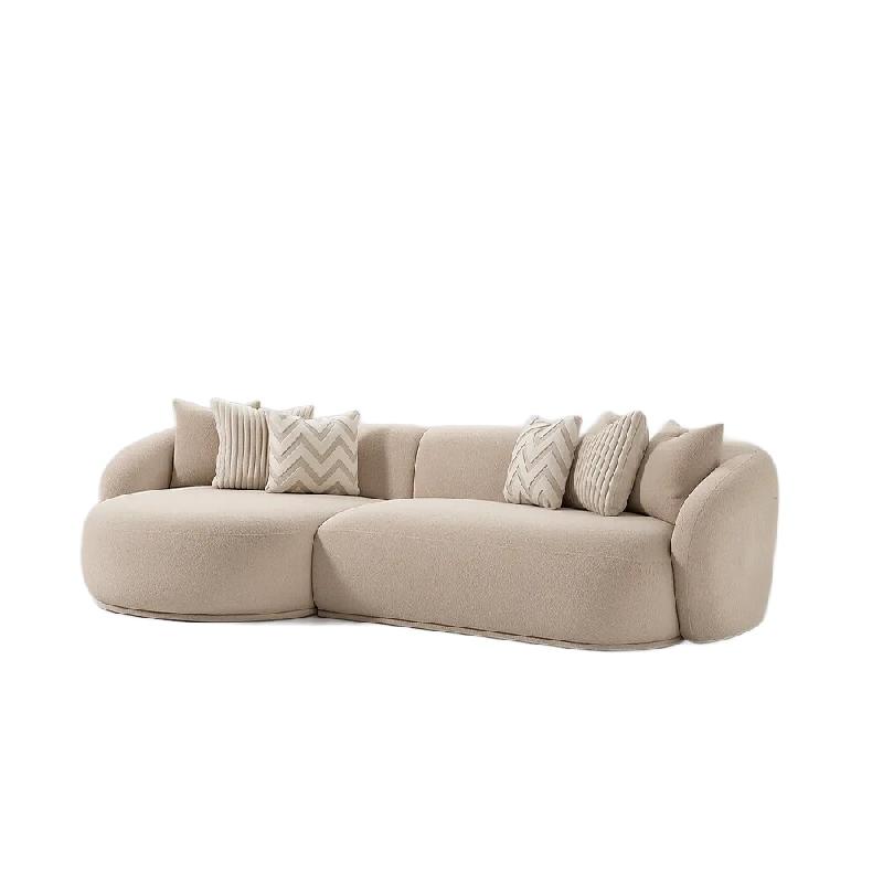 Le canapé MILANO incurvé angle gauche se compose de deux modules qui s'assemblent pour former un espace de détente moderne et enveloppant. Son design asymétrique crée un angle arrondi sur la gauche (vue face au canapé), idéal pour structurer un salon avec style. Sa finition blanche crème et