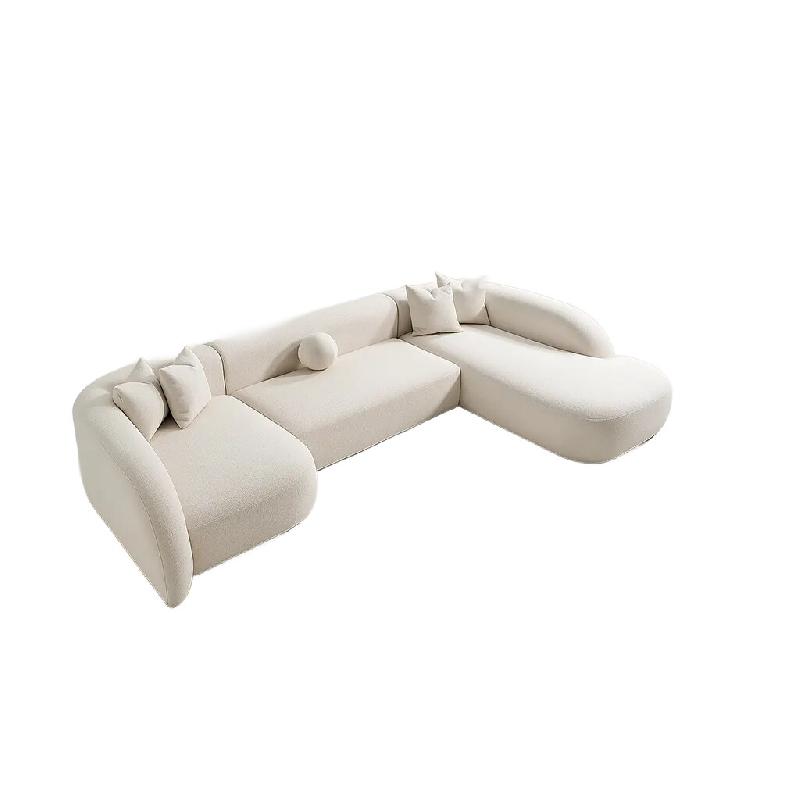 Le SERENITY est un canapé aux proportions généreuses et aux formes enveloppantes. Avec ses 350 cm de longueur, il offre une assise XXL pensée pour accueillir famille et amis dans un confort absolu.Ses accoudoirs arrondis et ses courbes douces créent un esprit cocooning tout en apportant une touche design ultra contemporaine. Sa structure basse et ses volumes pleins rappellent les codes du mobilier organique, tendance forte de la décoration actuelle.Le revêtement en laine rasée écrue offre un toucher doux et texturé, renforçant l'esprit cosy du canapé. Livré avec coussins et accessoires décoratifs assortis, le SERENITY transforme votre salon en un espace de détente chic et harmonieux.DimensionsLongueur totale : 350 cmProfondeur méridienne gauche : 220 cmProfondeur méridienne droite : 160 cmHauteur d'assise : 42 cmCaractéristiquesStructure : bois massif + mousse haute densitéRevêtement : laine rasée écrueDesign : courbes organiques, dossier bas, accoudoirs enveloppantsConfort : assise moelleuse, soutien optimalCapacité : 5 à 6 personnesAccessoires inclus : coussins décoratifs + coussins sphériques