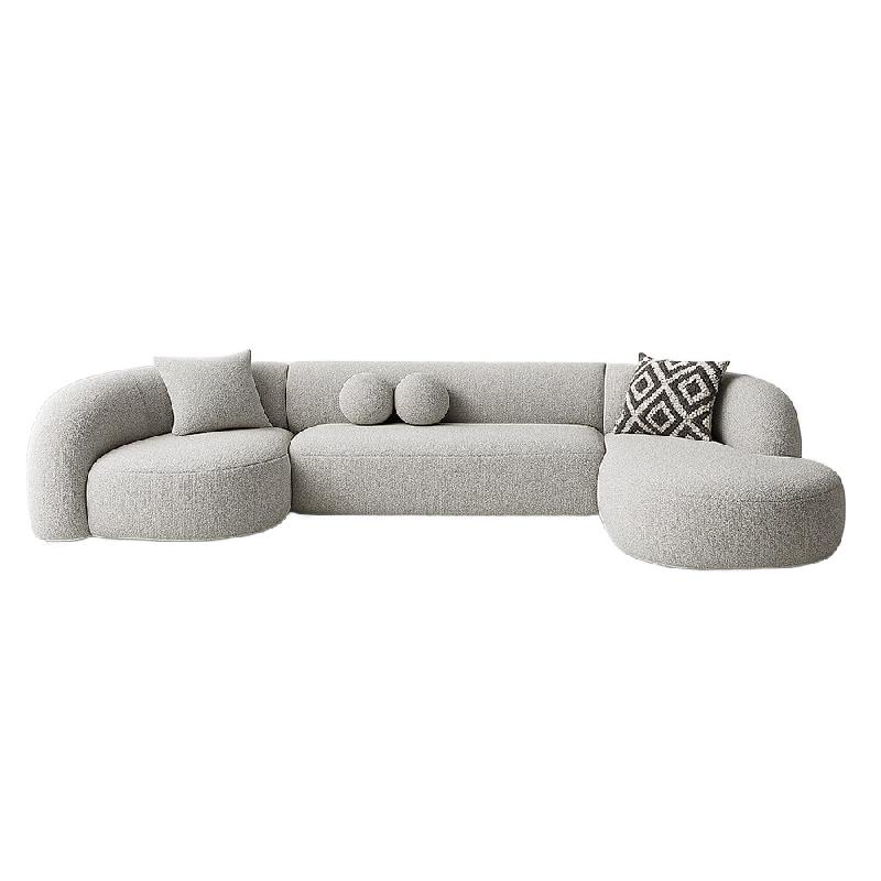 Le SERENITY est un canapé aux proportions généreuses et aux formes enveloppantes. Avec ses 350 cm de longueur, il offre une assise XXL pensée pour accueillir famille et amis dans un confort absolu.Ses accoudoirs arrondis et ses courbes douces créent un esprit cocooning tout en apportant une touche design ultra contemporaine. Sa structure basse et ses volumes pleins rappellent les codes du mobilier organique, tendance forte de la décoration actuelle.Le revêtement en laine rasée Gris Minéral offre un toucher doux et texturé, renforçant l'esprit cosy du canapé. Livré avec coussins et accessoires décoratifs assortis, le SERENITY transforme votre salon en un espace de détente chic et harmonieux.DimensionsLongueur totale : 350 cmProfondeur méridienne gauche : 160 cmProfondeur méridienne droite : 220 cmHauteur d'assise : 42 cmCaractéristiquesStructure : bois massif + mousse haute densitéRevêtement : laine rasée Gris MinéralDesign : courbes organiques, dossier bas, accoudoirs enveloppantsConfort : assise moelleuse, soutien optimalCapacité : 5 à 6 personnesAccessoires inclus : coussins décoratifs + coussins sphériques