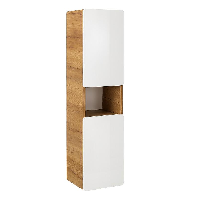 Découvrez la colonne de salle de bain à suspendre de 25 cm de la collection Aruba White, alliant esthétisme et fonctionnalité. Son design épuré avec une façade en aspect bois apporte une touche moderne à votre espace. Facile à installer, cette colonne est dotée de portes laquées qui s'ouv