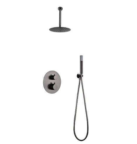 STELLAMEUBLES Ensemble de douche thermostatique encastré Tivoli Gris Anthracite - 8435668031318