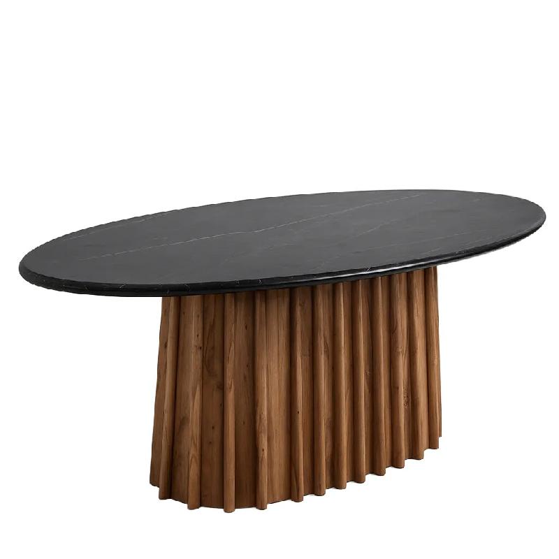 STELLAMEUBLES Table à manger ovale DRAXX en bois d'acacia et marbre noir 100x200cm - 5208067140997