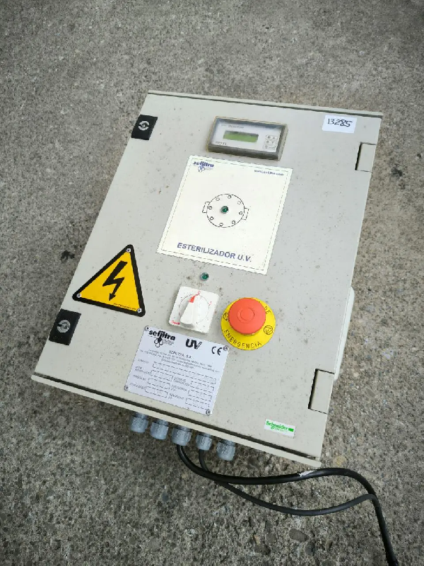 Stérilisateur d'eau fabriqué par SEFILTRA en acier inoxydable 316 d'une capacité de 17 litres. Avec panneau électrique. Sans documentation. Dimensions du stérilisateur : Longueur 1100 mm Largeur 150 mm Hauteur 250 mm Dimensions du panneau électrique : Longueur 400 mm Largeur 250 mm Hauteur 460 mm