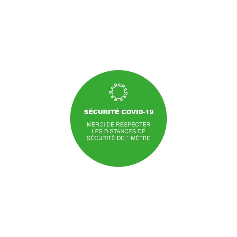 Sticker rond marquage au sol "Sécurité Covid-19" - Vert