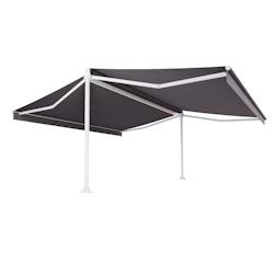 Store double pente Mabay 4,74x2x2,50 M Intersun Motorisé à télécommande (Motorisé à Télécommande - Blanc satiné RAL9010 - Gris foncé 300g/mÂ