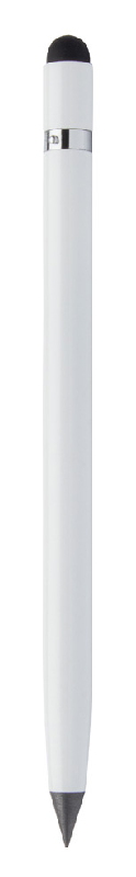 Stylo sans encre, longue durée en aluminium recyclé avec stylet tactile et pointe en alliage métallique qui oxyde le papier. Ce stylo écrit de la même manière qu'un crayon et il est également effaçable. - Inclus : Gomme à l'intérieur du stylet tactile - Couleur : Blanc Poids : 14 gr