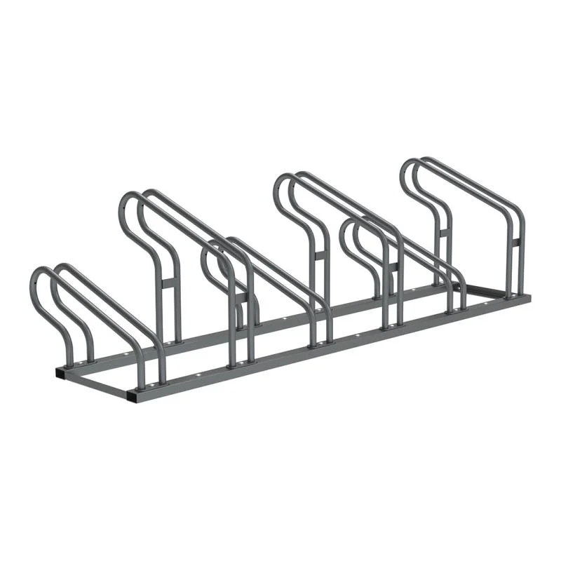 CARACTÉRISTIQUES TECHNIQUES - Module de 6 places ou 5 places. - Emplacements décalés en hauteur, utilisables des deux côtés - Structure : acier, tube 35 x 35 mm, griffes Ø 22 mm - Hauteur hors sol : 388 mm - Largeur : 550 mm - RECOMMANDATIONS DE POSE - À poser ou à fixer au sol par tr