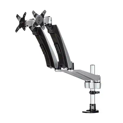 Le bras pour deux écrans ARMDUAL30 optimise votre espace de travail en vous permettant de placer deux écrans côte à  côte ou l'un au - dessus de l'autre, offrant ainsi confort et productivité. - Configuration polyvalente : Supporte jusqu'à  deux écrans de 12 à  30 pouces en mode côte Ã
