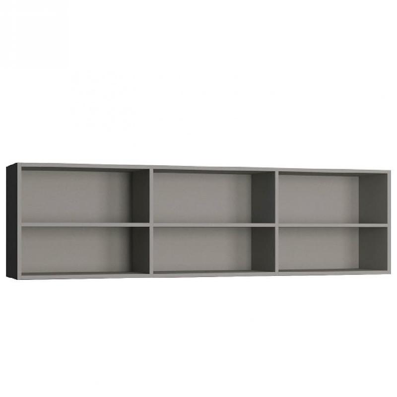 CARACTÉRISTIQUES TECHNIQUES : - 6 niches fixes - Structure en panneaux de particules mélamine épaisseur 18mm - Étagères et fond en panneaux de particules mélamine épaisseur 18mm - Coloris gris mat - DIMENSIONS : - Largeur : 215 cm - Hauteur : 106 cm - Profondeur : 35 cm - COLORIS :