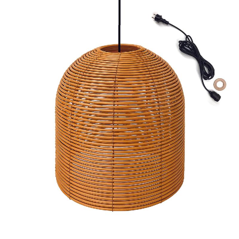 L'abat - jour naturel Maya Shade est une suspension en polyrotin trèssé au style bohème, reposant sur une structure métallique solide qui vous offre la liberté de choisir votre source lumineuse. Son cerclage est conçu pour accueillir une douille E27 standard. Sa forme naturelle apporte une tou