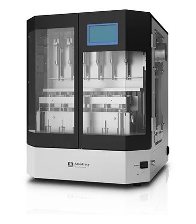 Le modèle AquaTrace ASPE900 est un système SPE totalement automatisés dédiés à l’analyse de la qualité de l’eau, permettant de déléguer les tâches manuelles et longues aux processus automatisés pour gagner en productivité. Ils intègrent une interface utilisateur intuitive et un contrôle visuel via un écran tactile LCD, tout en garantissant un débit précis grâce une pompe à piston. L'AquaTrace intègre une étape d'évaporation du solvant d'élution.