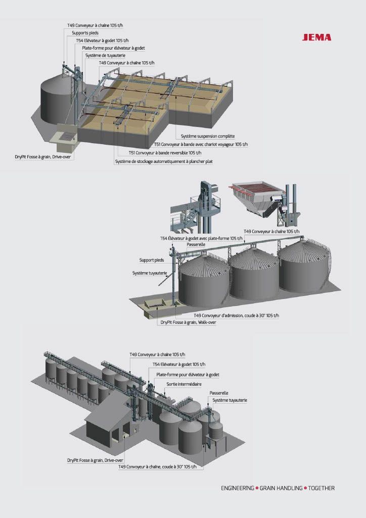 Pour la manutention des céréales transporteur à chaîne ou fosse de réception nous consulter