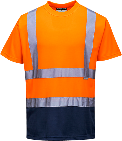T-shirt bicolore orange marine S378 - taille L - vêtement respirant, bandes réfléchissantes, certifié CE