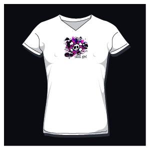T-shirt femme tête de mort - col V - motif personnalisable - marque BC - tailles S à XL