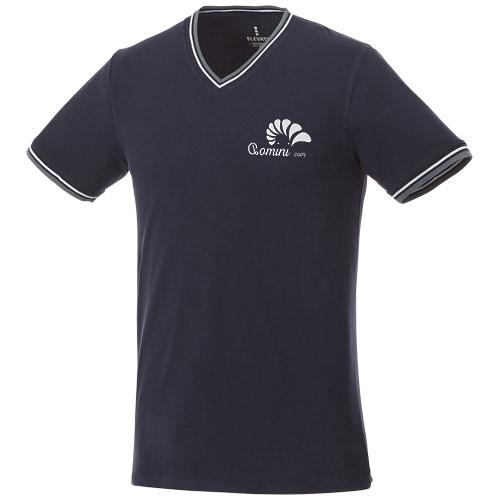T-shirt maille piquée manches courtes homme Elbert - col V et poignets à côtes contrastées - 100% coton, 180 g/m²
