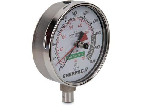 Pression de travail maximale - 3500 bar - Style - Dry - Diamètre du manomètre - 192 mm - Précision, 100 % de la pleine échelle - 1.5 - Matériau - Acier inoxydable - Graduation - 50 bar - Nombre de graduations - 500 bar - Graduations entre divisions - 50 bar