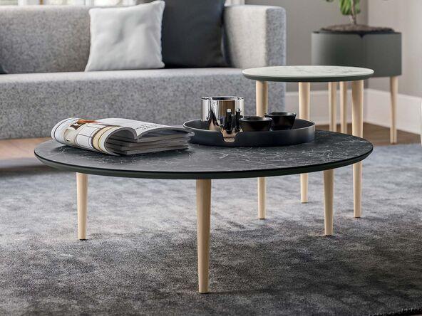 Table basse. Diamètre 46 ou 59 cm. Structure gris ombre. Plateau en gré de porcelaine 5 mm. Plateau rond. - Marque : Etner