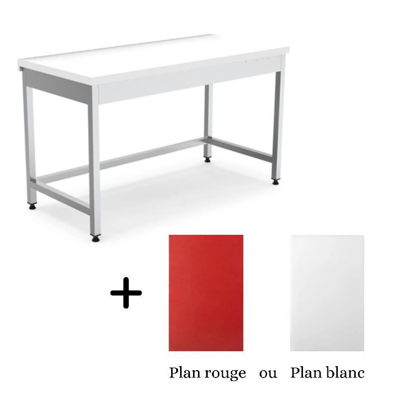 Table en polypropylène avec plan blanc ou rouge selon votre choix. - Sans dosseret et sans sous - tablette. - Épaisseur : 4 cm - Profondeur : 70 cm - Référence : TBB1000700