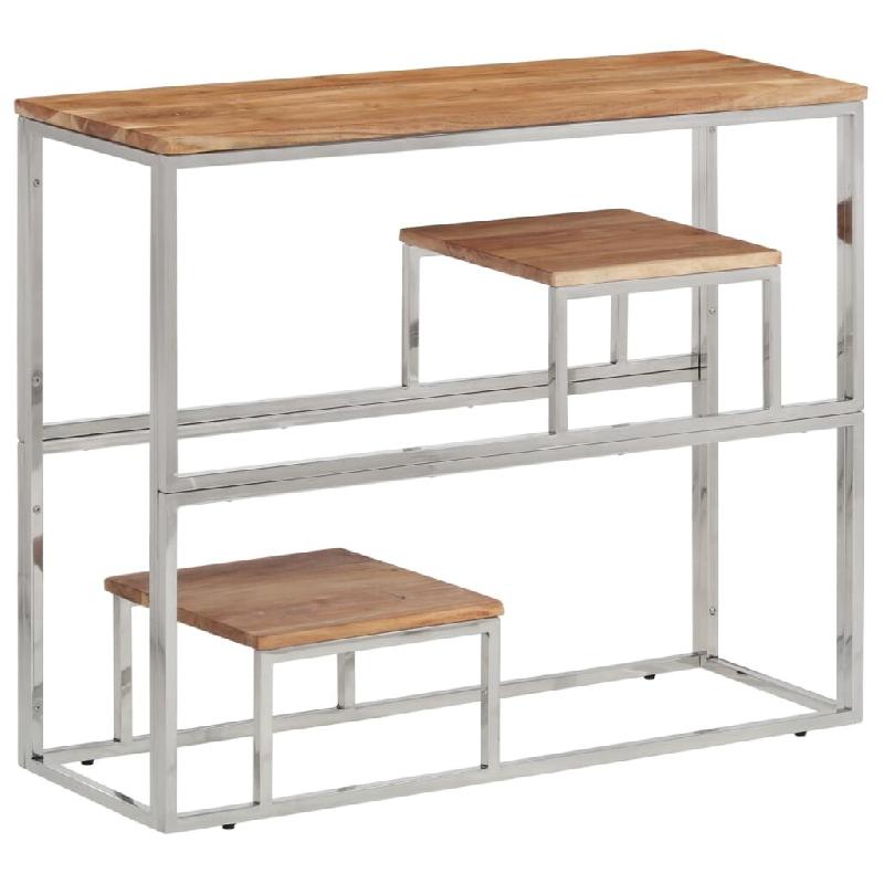 Table console argenté acier inoxydable et bois massif d'acacia Modèle Atlas Cuisine - 350015