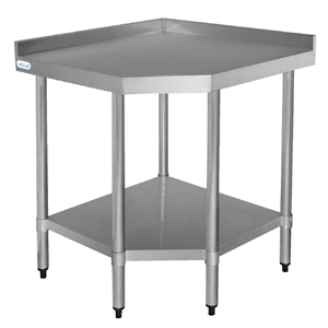 Vogue Table d'angle de travail avec rebord et étagère 80 x60cmTable d'angle en inox pour gagner de la place.Pieds et étagère inférieure également en inox. Peut être combiné avec d'autres tables de travail de cette gamme. - Avec rebord et étagère Acier inoxydable 90 x 80 x 60cm - 90(H) x