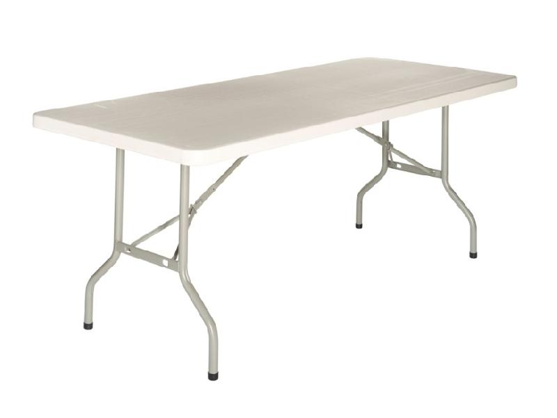 La table polypro est une table en plastique qui est donc très facile d'entretien. Cette table est livrée très rapidement. Délai généralement constaté : environ 5 jours. Cette table possède une double barre de renfort en dessous et au milieu de la table, ce qui lui confère une solidité sans