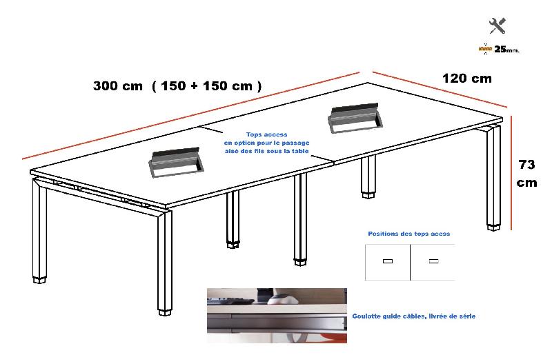 Pour une utilisation pratique, le plateau est arrondi aux angles, ce qui facilite la circulation autour de la table et adoucit le design.Caractéristiques principales : - Trappes top access facilitant le passage de câbles, avec double ouverture et bac permettant d'y disposer des prises électrique