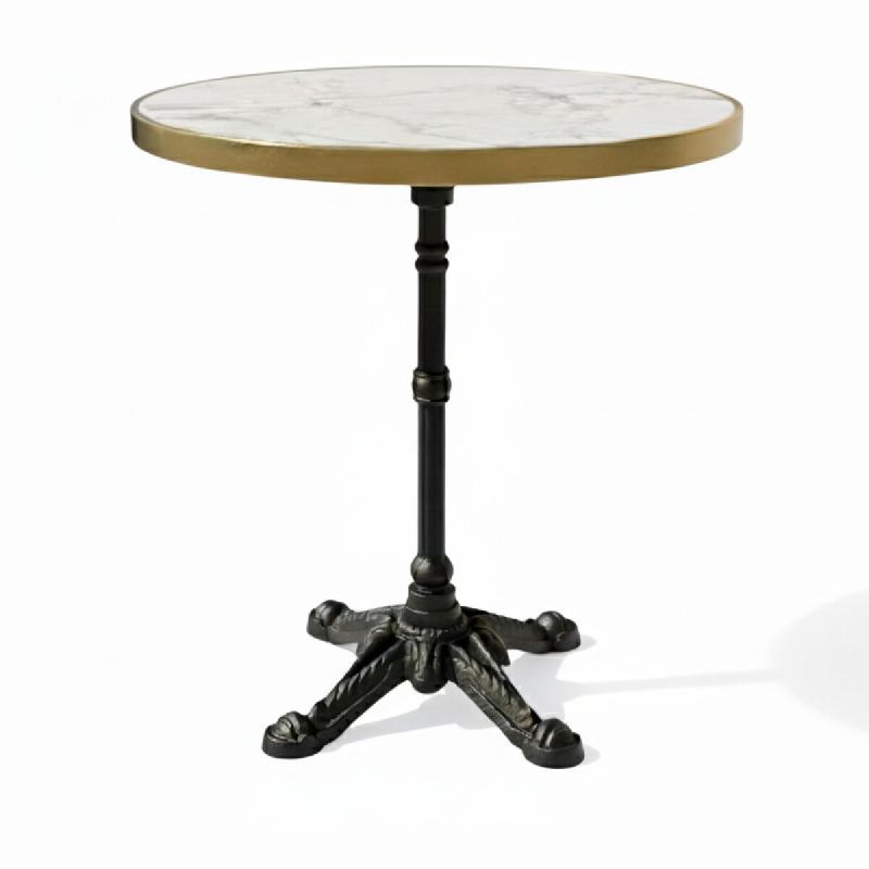 Idéale pour les terrasses, cafés ou restaurants, cette table de restaurant AURORE diamètre 60 cm avec le pied OPERA 4 associe un design classique à une grande stabilité.Son plateau rond avec rebord métallique apporte une touche élégante et s'intègre facilement à différents styles d'aménagement, en intérieur comme en extérieur couvert.Le piétement central en fonte moulée assure un excellent maintien tout en facilitant la circulation autour de la table. Parfaite pour accueillir deux personnes, elle convient aux espaces de restauration souhaitant optimiser leur agencement sans compromettre l'esthétique.