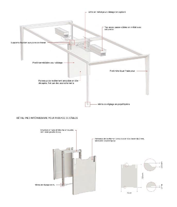 Les pieds intermédiaires permettent de faire descendre les fils à l'intérieur pour une gestion des câbles parfaites.