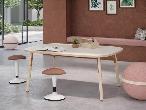 Table de réunion tonneau Usoa Akaba. Dimensions 180x90 ou 210/240/270 x 120 cm. Bois mélaminé 30mm. Piètement design nombreux coloris. Top access en option. Garantie 3 ans. - Marque : Akaba