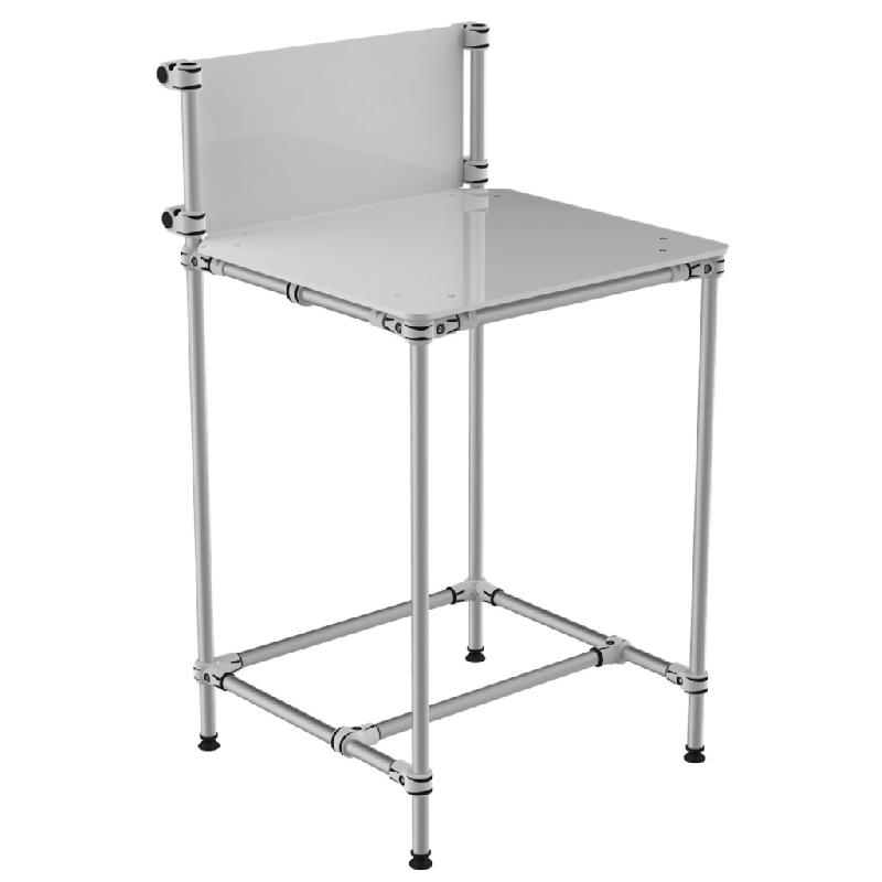 Poste de travail et de contrôle compact. Montage sur pied réglables, structure en Aluminium et panneau frontal d'affichage blanc.