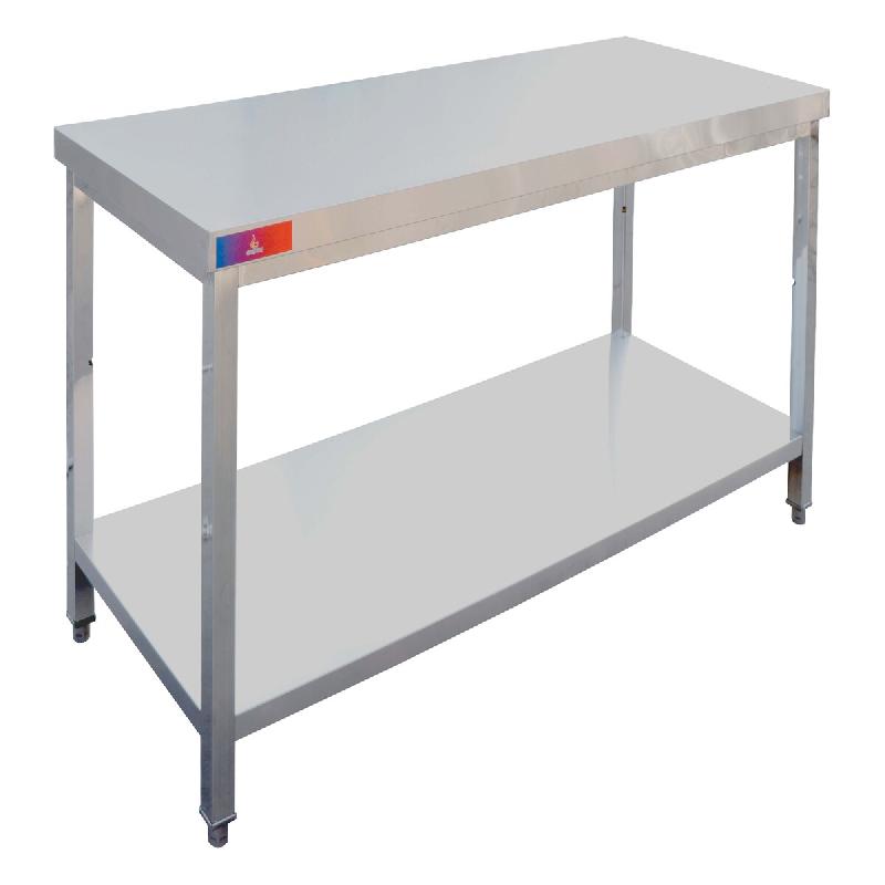 Table de travail en acier inoxydable - Table professionnelle, robuste et polyvalente, conçue pour les établissements du secteur de l'hôtellerie - restauration. - Point clé - Épaisseur de l'acier : 0,8 mm. Nous ne faisons aucun compromis sur la qualité. - Caractéristiques - Dimensions : 1