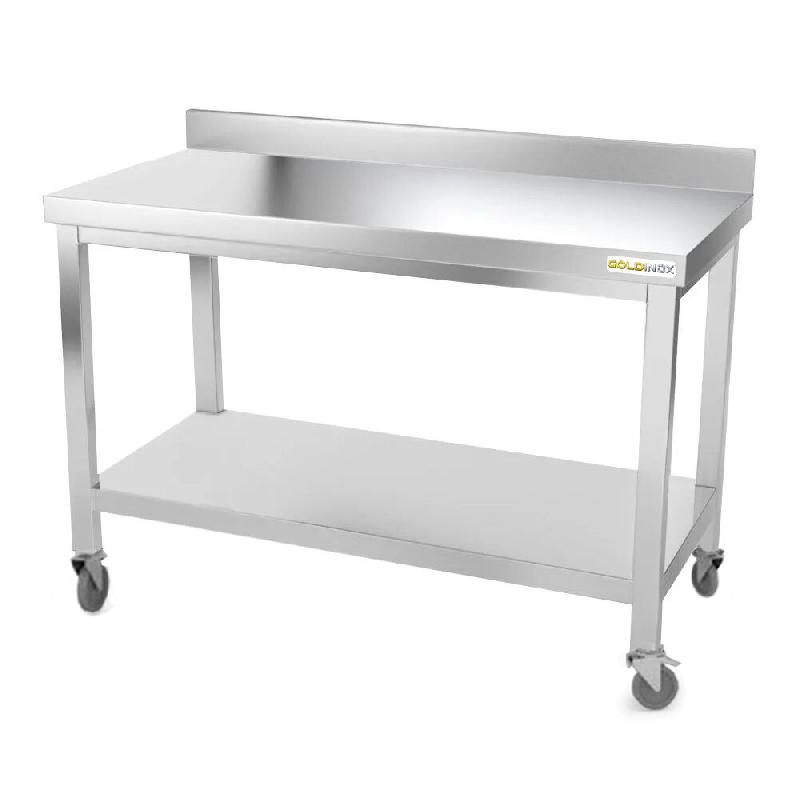 Table de travail en inox soubassement 1500 x 700 mm sur roulettes PREMIUM / GOLDINOX : conçu pour un usage professionnel, il allie robustesse, hygiène et praticité. - Acier inoxydable de qualité professionnelle, résistant et facile à nettoyer - Modèle PREMIUM offrant durabilité et finition