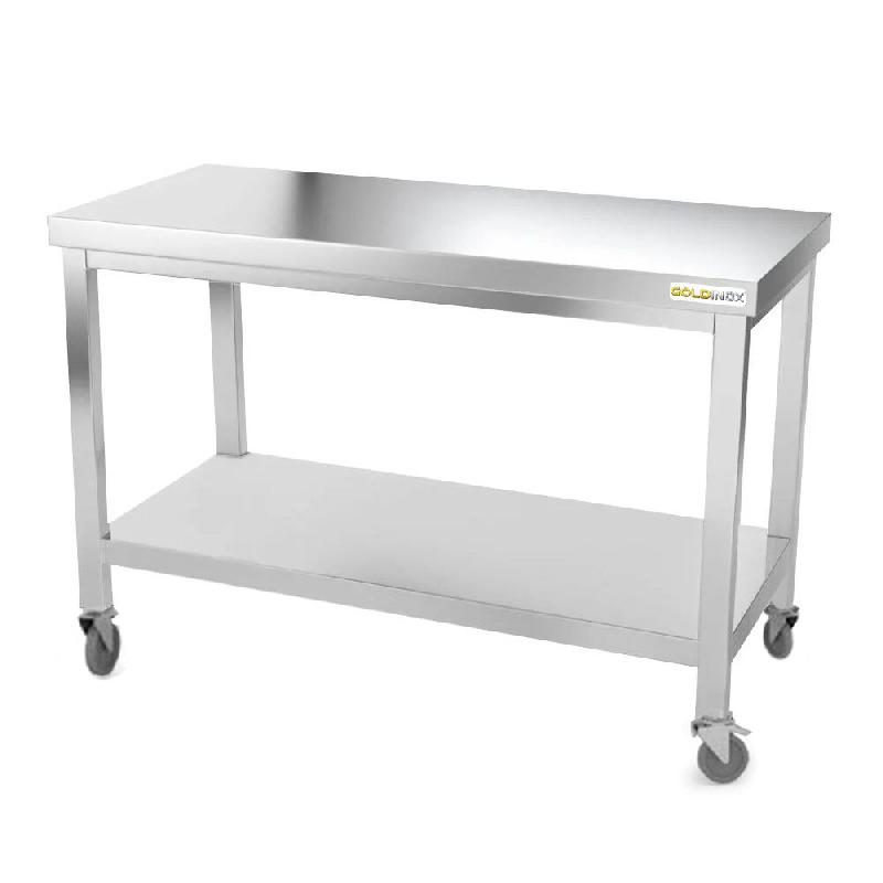 Table de travail en inox soubassement 1500 x 700 mm sur roulettes PREMIUM / GOLDINOX : conçu pour un usage professionnel, il allie robustesse, hygiène et praticité. - Acier inoxydable de qualité professionnelle, résistant et facile à nettoyer - Modèle PREMIUM offrant durabilité et finition
