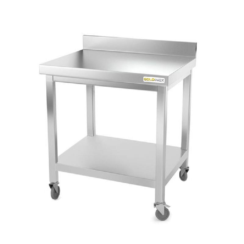 Table de travail en inox 600 x 700 mm adossée sur roulettes / GOLDINOX - gris inox 3701770802326