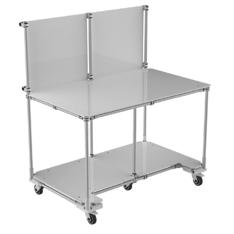 Poste de travail et de contrôle compact roulant . Montage sur 2 roulettes pivontantes frein et 2 roulette pivotantes . structure en Aluminium et panneau frontal d'affichage blanc. - Référence : 50 - 2 - Marque : Trilogiq