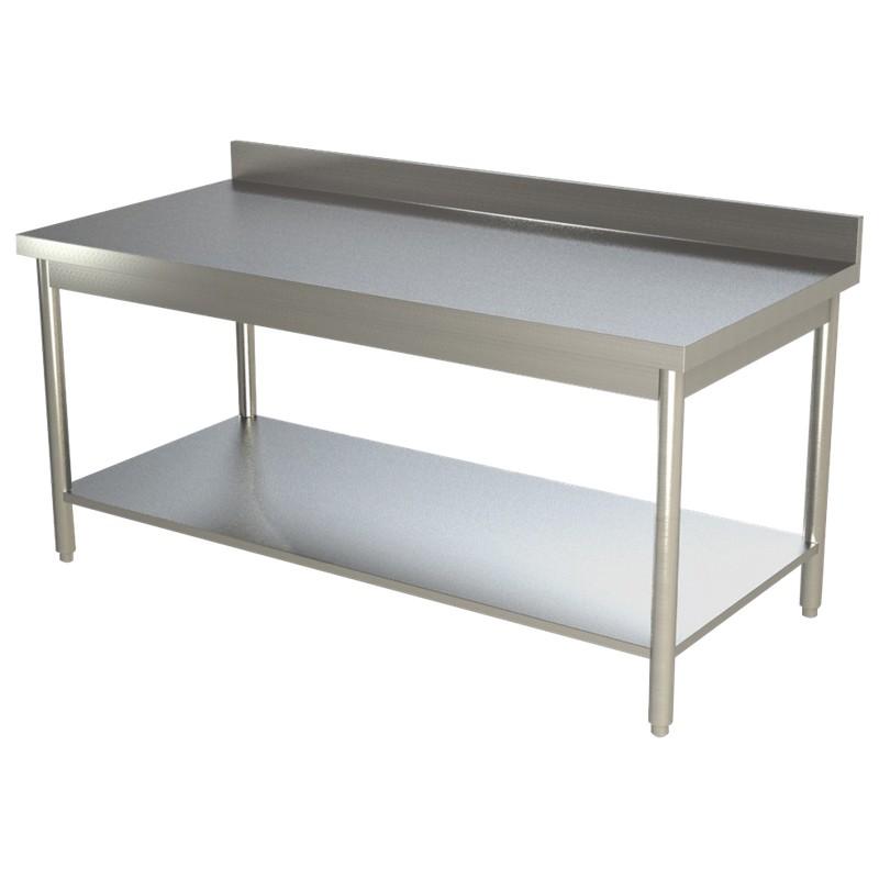 7333.0114 - Table de travail pro inox avec étagère et dosseret démontable Dimensions (LxPxH) (mm) : 1800x700x850