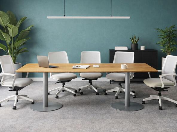 Table de réunion Gravity. Dimensions 240x120 cm. Plan placage de bois ou stratifié HPL épaisseur total 78 mm. Chant en aile d'avion. Médiabox en option. Garantie 3 ans. - Marque : MDD