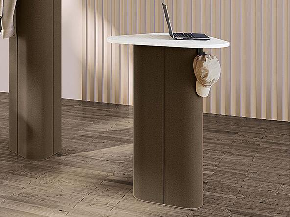 Table haute totem Power Tab. Plan rond ou carré 110 cm en mélaminé 19 mm. Colonne structure en bois rembourré de mousse acoustique et revêtu de tissu. Prises intégrées en option. - Marque : Cadeinor