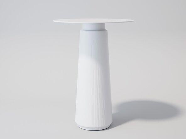 Table haute ronde Dorik Actiu. Espaces de réunion informels, zones café et espaces de coworking. Hauteur d?environ 105 cm. Pied conique en polyéthylène rotomoulé 100 % recyclable.