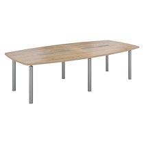 Une table de grande allure avec des passages de câbles intégrés aux plateaux. Table ovale coloris peuplier pour 10 personnes. - Plateau mélaminé haute résistance traité antireflet, épaisseur 30 cm. - Angles arrondis dotés de chants droits antichocs. - Double top access pour le passage de