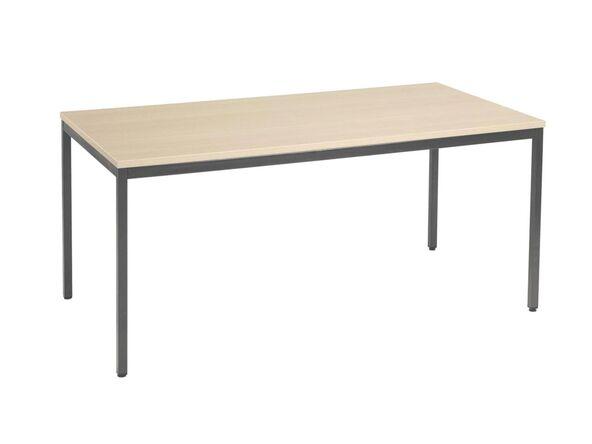 Table polyvalente. Piètement métallique. Plateau mélaminé bois clair. Dimensions L120, L140, L160 cm. Profondeur 60, 70 et 80 cm.