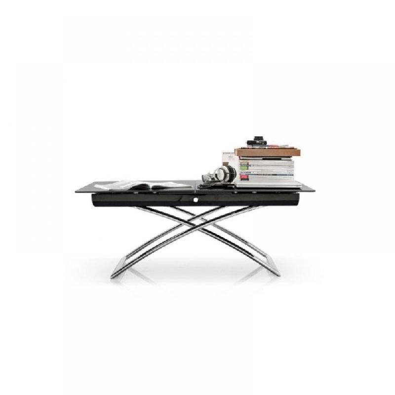 Table basse relevable et extensible Magic-J - Verre noir - Piétement chromé - Réglable en 7 hauteurs -