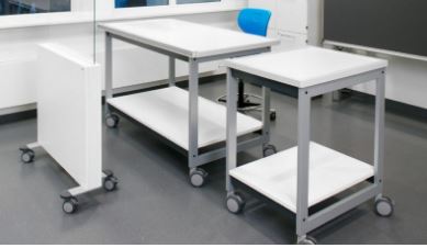 Les tables d'appoint de Waldner Education sont particulièrement confortables. Préparez des expériences passionnantes dans la salle de préparation et déplacez-les rapidement et sans bruit vers la salle de classe grâce aux roues particulièrement silencieuses. Une grande variété de surfaces de table robustes est disponible pour vos configurations expérimentales.